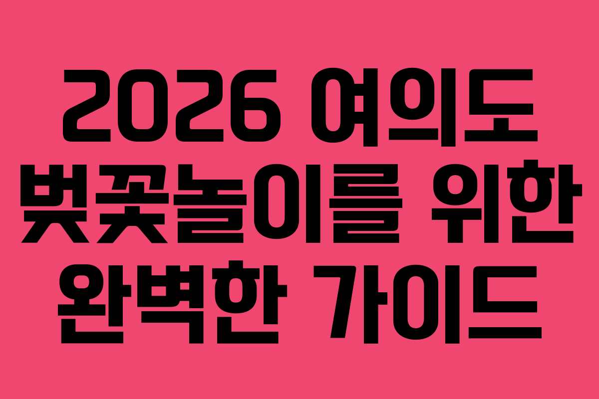 2026년 여의도 벚꽃놀이 최적의 경로 정리