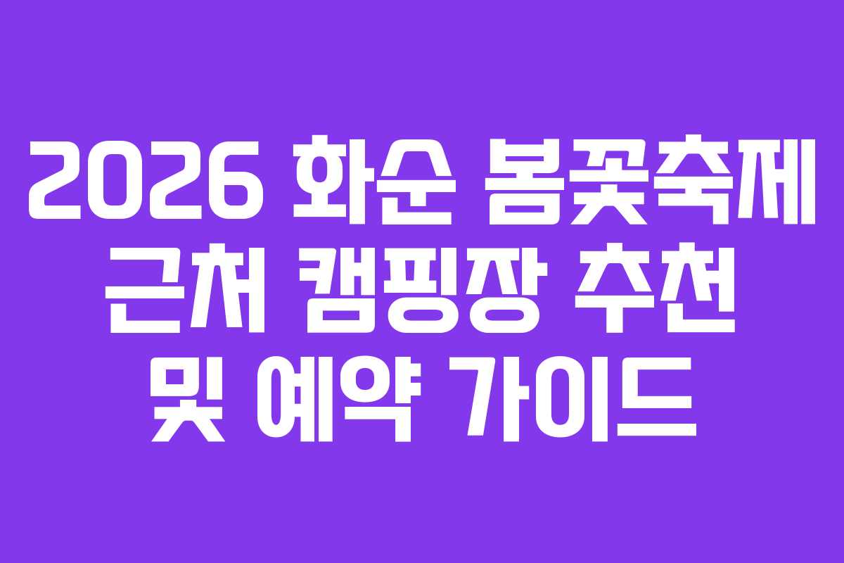 2026 화순 봄꽃축제 근처 캠핑장 추천 및 예약 가이드