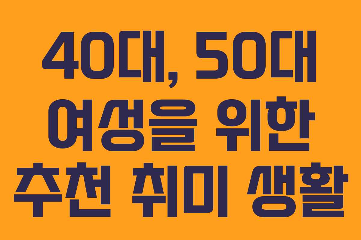 40대와 50대 여성들이 새로운 취미를 찾는 것은 삶의 질을 높이고, 스트레스를 해소하는 데 큰 도움이 됩니다. 이 연령대는 자녀가 성장하면서 자신을 위한 시간을 가질 수 있는 기회가 많아지기 때문입니다. 다양한 취미를 통해 새로운 경험을 쌓아보세요.