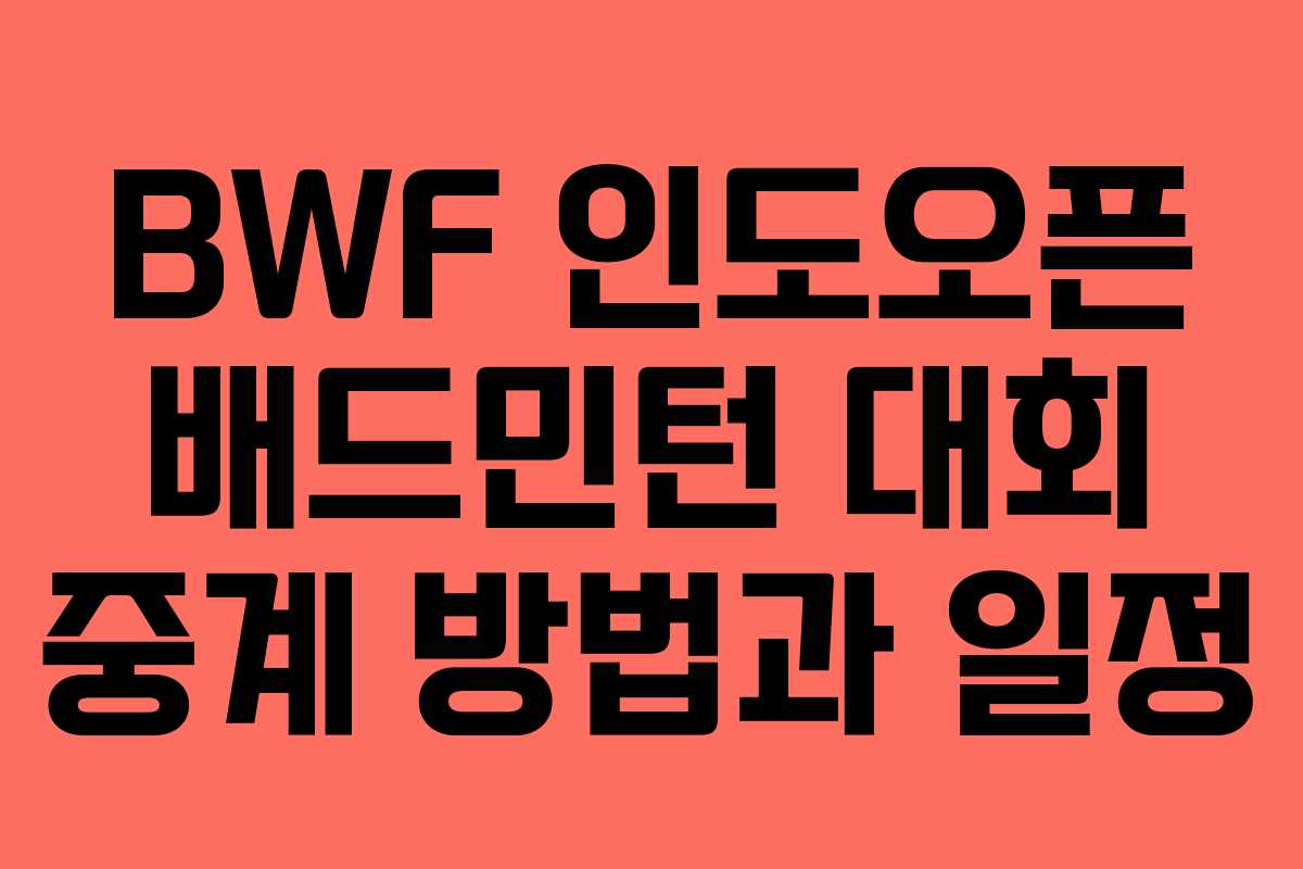 BWF 인도오픈 배드민턴 대회는 유튜브에서 무료로 생중계됩니다. 대회를 시청하고 싶으신 분들은 BWF 공식 유튜브 채널을 통해 생중계를 확인하실 수 있습니다.