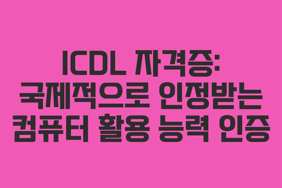 ICDL(International Computer Driving License)은 한국생산성본부에서 2008년에 런칭한 자격증으로, 컴퓨터 활용 능력을 국제적으로 인증받을 수 있는 기회를 제공합니다. 이 자격증은 해외에서도 인정받아, 특히 유럽 등지에서 MOS(Microsoft Office Specialist)보다 더 높은 평가를 받고 있습니다.