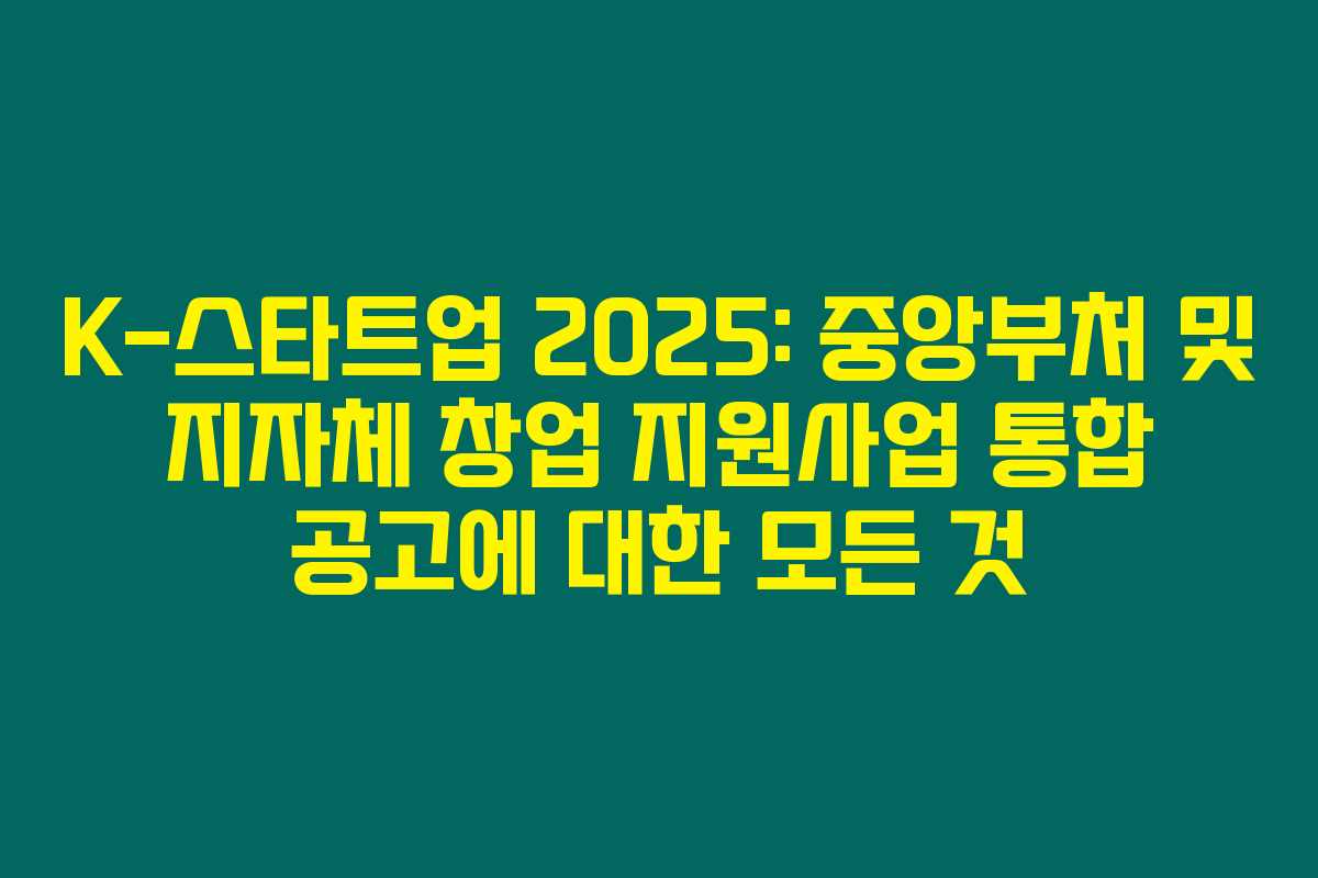 제가 알아본 바로는, K-스타트업 2025년 중앙부처 및 지자체 창업 지원사업 통합 공고는 예비 창업자와 기존 창업자에게 아주 유용한 정보 제공을 목적으로 합니다. 이 공고를 통해 다양한 창업 지원 사업의 정보를 일목요연하게 정리해둔 파일을 제공하고 있는데요, 아래를 읽어보시면 신청 방법 및 대상, 제출 서류부터 지원 내용까지 전반적인 내용에 대해 알아볼 수 있습니다.