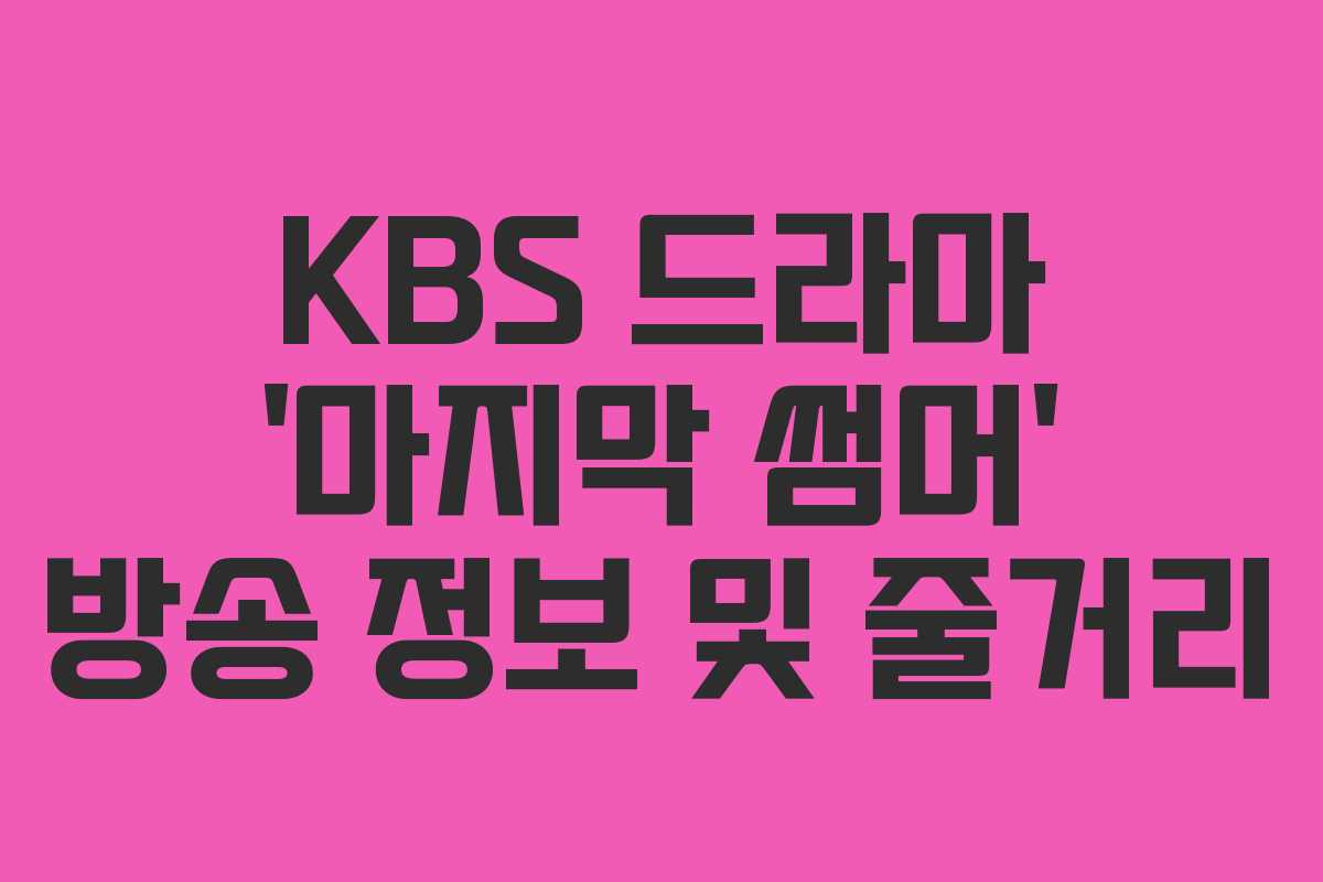 2025년 11월 1일, KBS가 새롭게 선보이는 드라마 ‘마지막 썸머(Last Summer)’가 기대를 모으고 있습니다. 이 작품은 여름을 싫어하는 여자와 여름을 기다려온 남자의 첫사랑 이야기를 담고 있는 감성 로맨스 드라마로, 시청자들에게 따뜻하면서도 쓸쓸한 감정을 선사할 예정입니다.