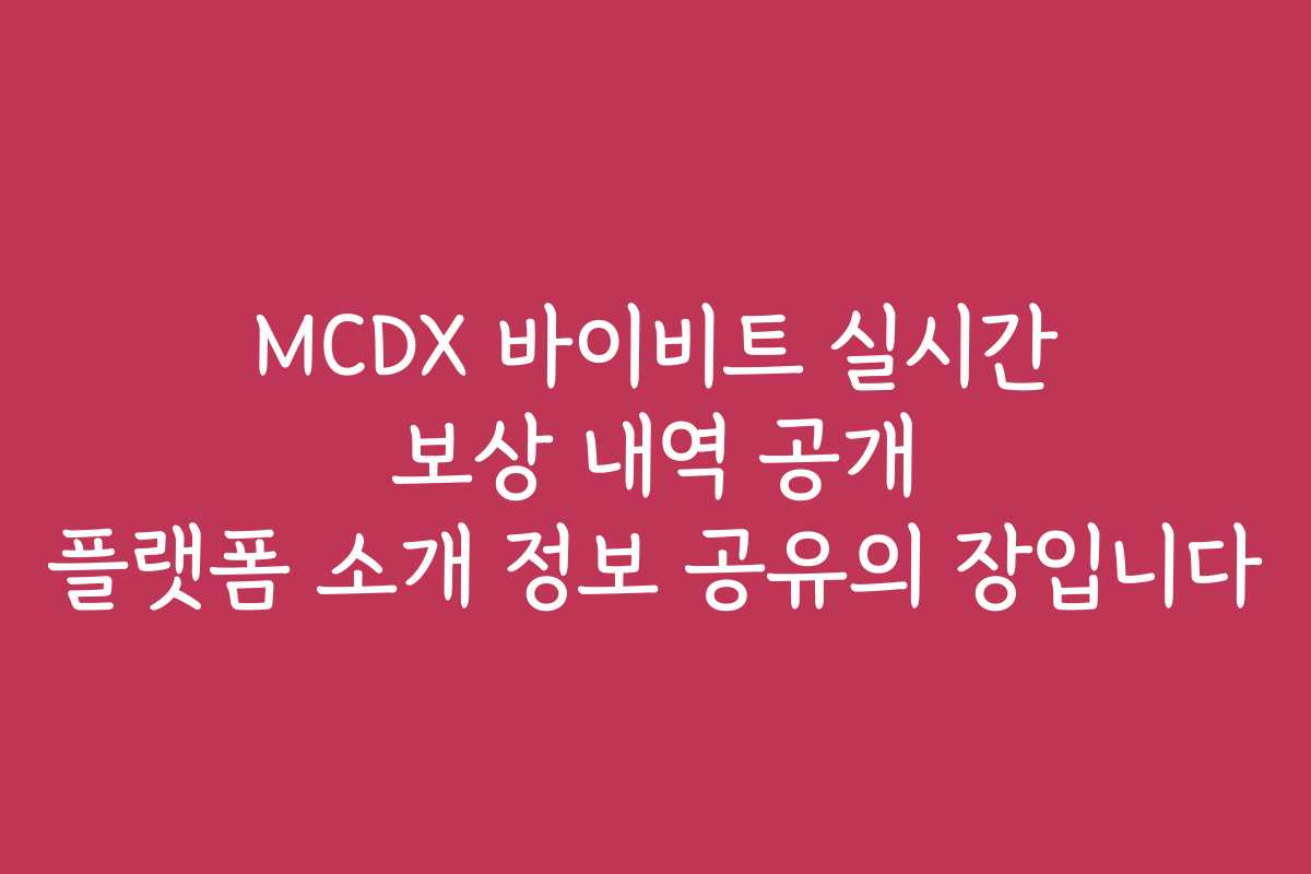 MCDX 바이비트 실시간 보상 내역 공개 플랫폼 소개 정보 공유의 장입니다