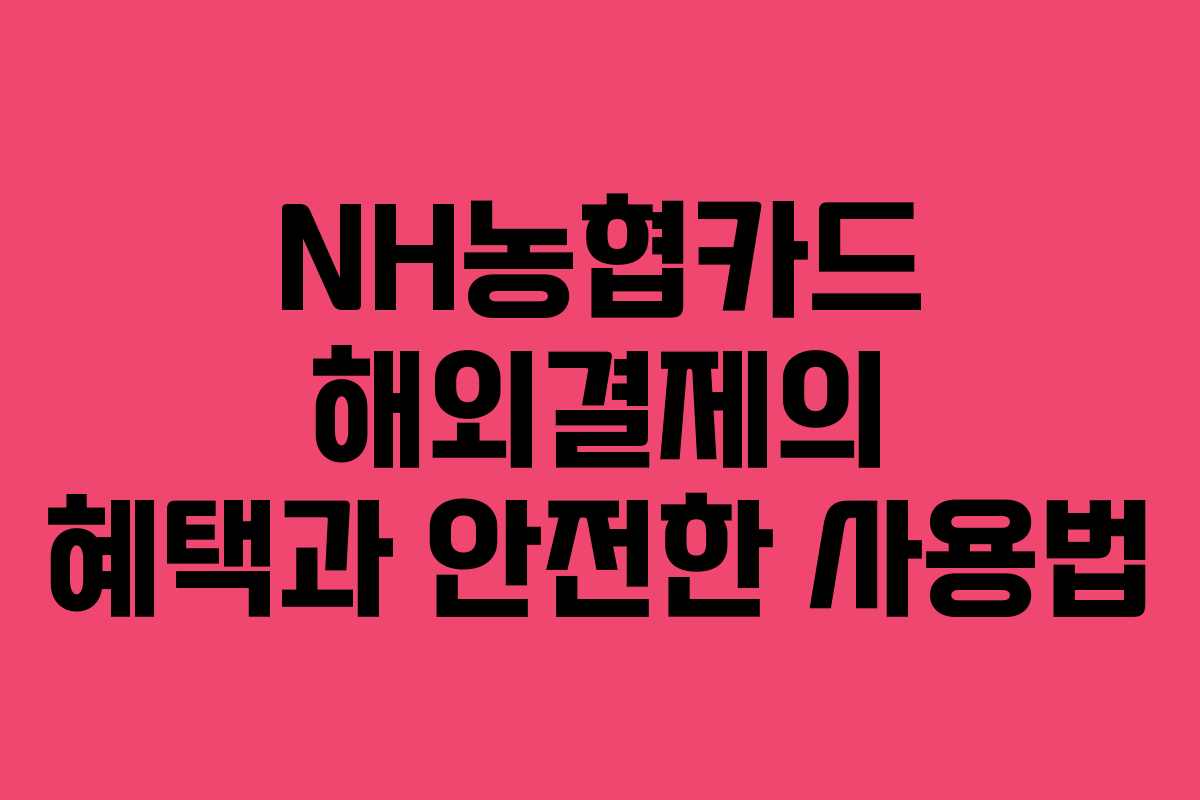 해외여행을 계획하고 있다면 NH농협카드의 해외결제 혜택을 활용하여 더욱 스마트한 소비를 할 수 있습니다. 특히 캐시백 이벤트와 안전한 결제 방법을 통해 여행을 더 즐겁고 안전하게 만들어보세요.