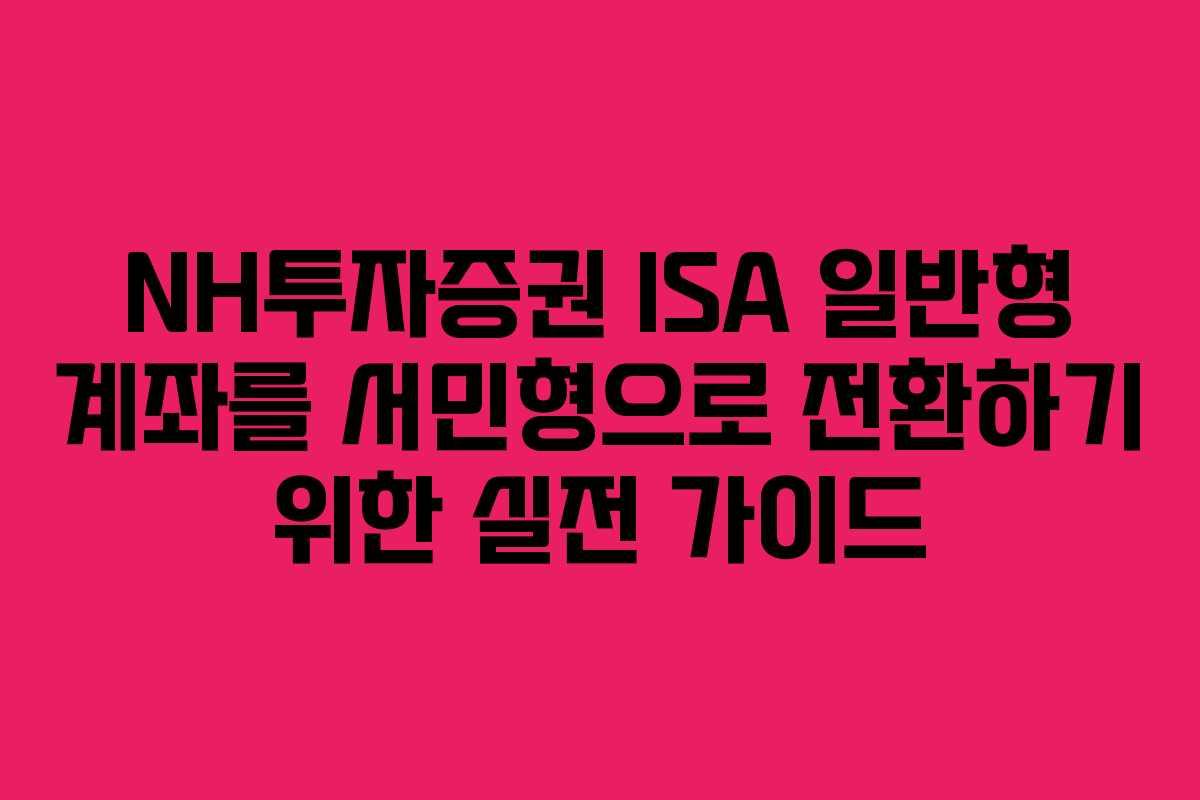NH투자증권 ISA 일반형 계좌를 서민형으로 전환하기 위한 실전 가이드