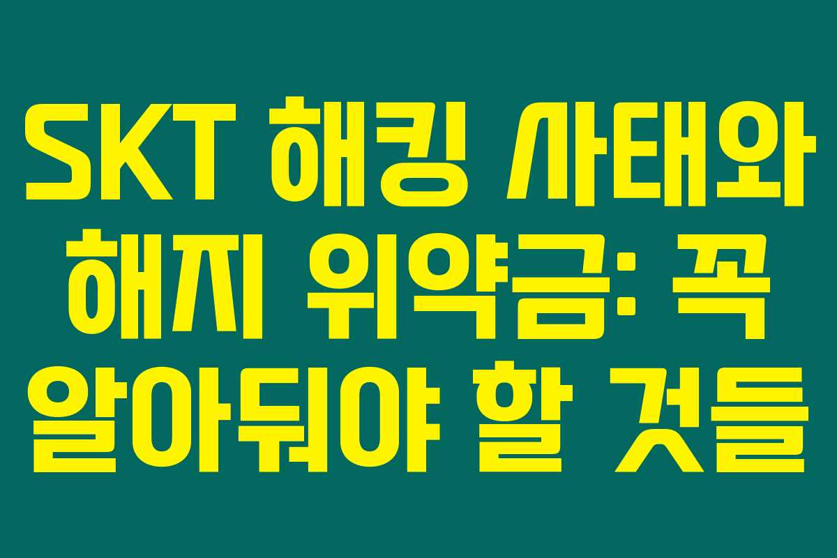 2025년 4월 SK텔레콤의 해킹 사건은 많은 사람들에게 충격의 소식을 안겼어요. 만약 SKT 고객이라면 이 사건으로 인해 개인정보 유출과 함께 해지 위약금이 문제가 되고 있다는 사실을 알고 계신가요? 이 글에서는 SKT 해킹 사태의 배경과 해지 위약금 문제, 그리고 소비자들이 스스로 취할 수 있는 조치를 담아보았어요. 아래를 읽어보시면 여러분의 권리와 SKT의 책임에 대해 깊이 이해할 수 있을 거예요.