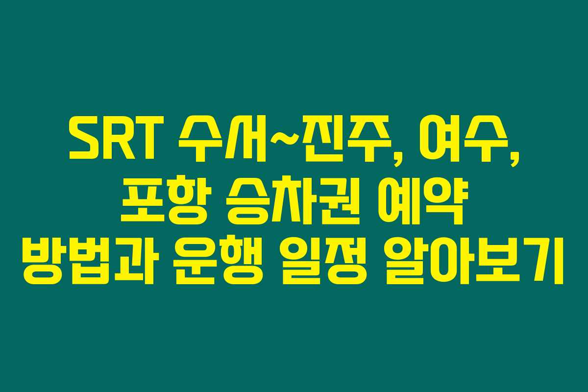 SRT의 수서~진주, 여수, 포항 노선이 개통됨으로써 여행하기가 더 수월해졌어요. 이런 기회를 놓치지 않고 미리 예매해보세요! 여러분의 여행이 더욱 즐겁고 편리하길 바랍니다.